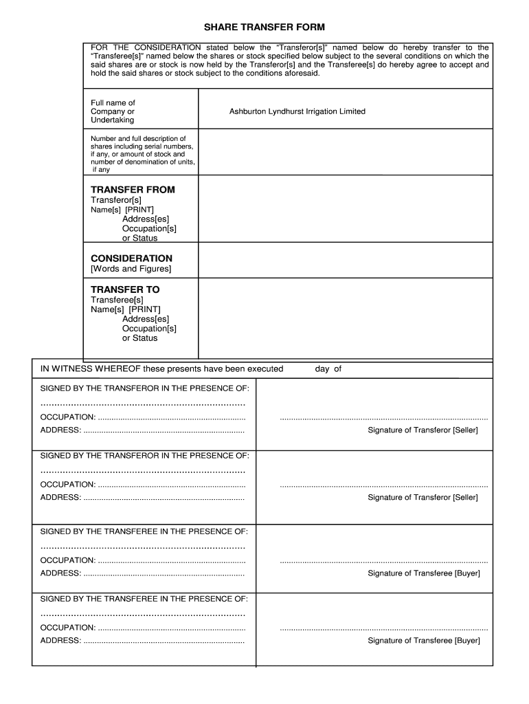 Get the free Share Transfer Form - Blank - alil.co.nz - alil co