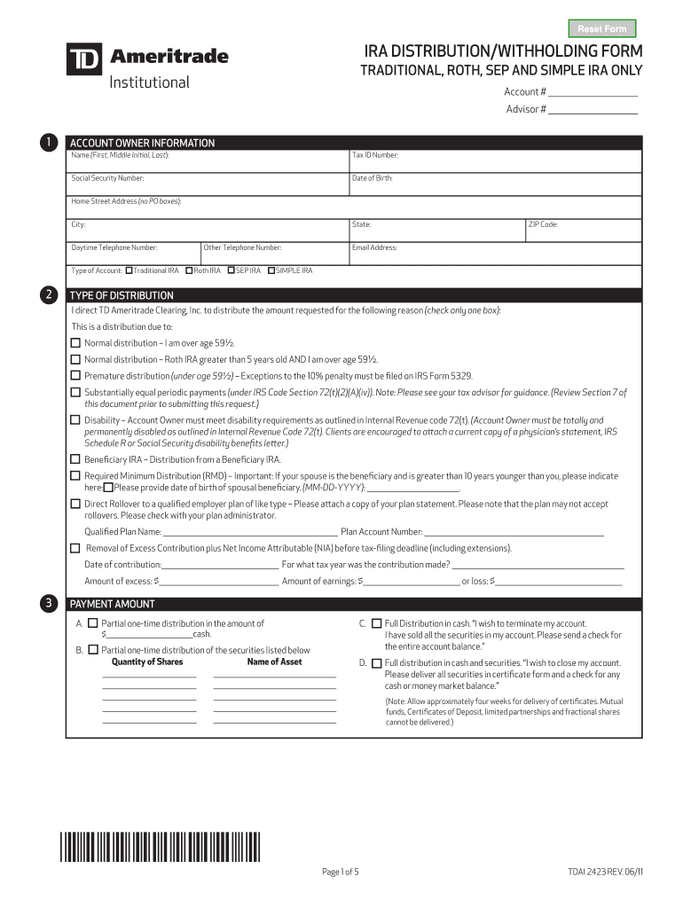 The IRA Distribution/Withholding Form is a tax document used by account owners to request distributions from their Traditional, Roth, SEP, or SIMPLE IRAs.