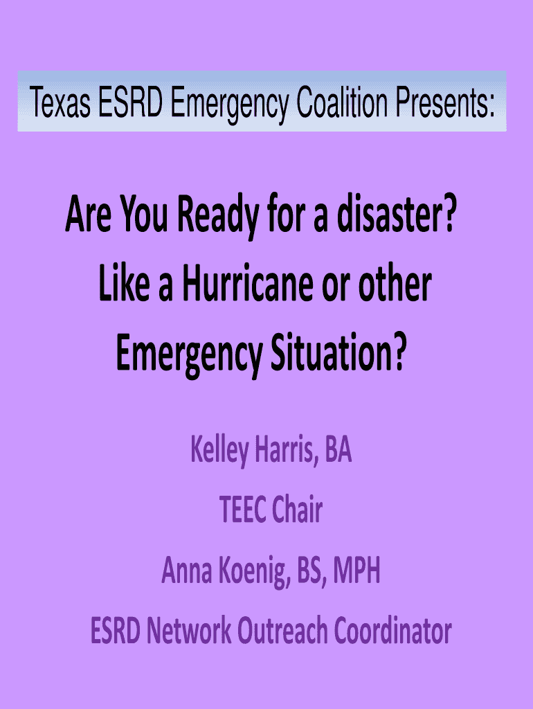 Get the free Texas ESRD Emergency Coalition Presents: - texasteec