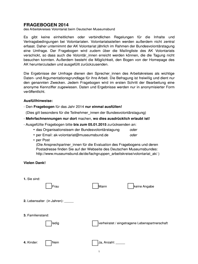 Date UND Ergebnisse warden our in anonymisierter Form very ffentlicht. USF llhinweise: ... Austen late Fragebogen bitter bis sum 05.01.2015 our sender an:.