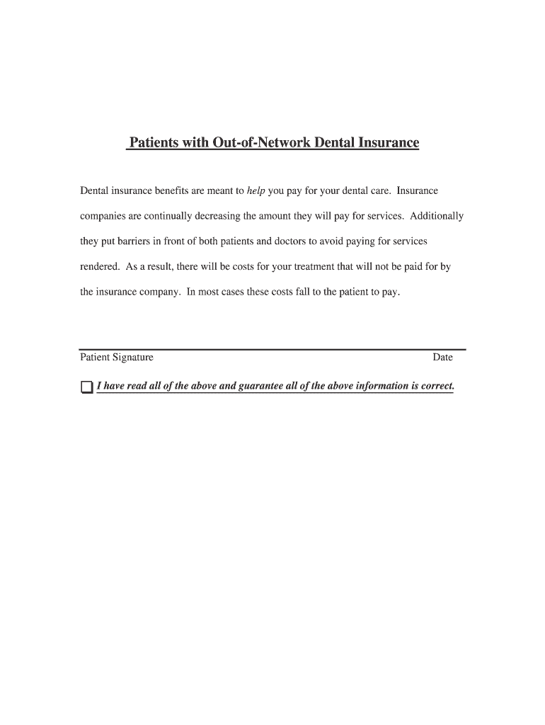 Patients with Out-of-Network Dental Insurance benefits are meant to help you pay for your dental care. Insurance companies are continually decreasing ...
