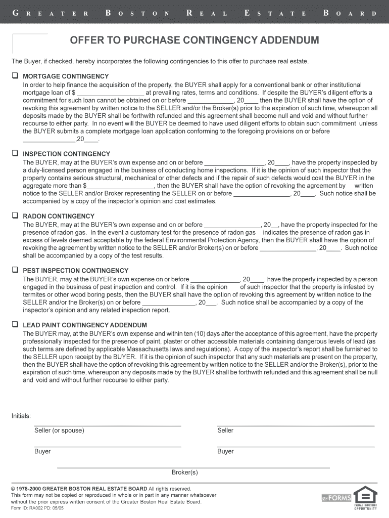 Key Features of the Greater Boston Real Estate Board Offer to Purchase Contingency Addendum