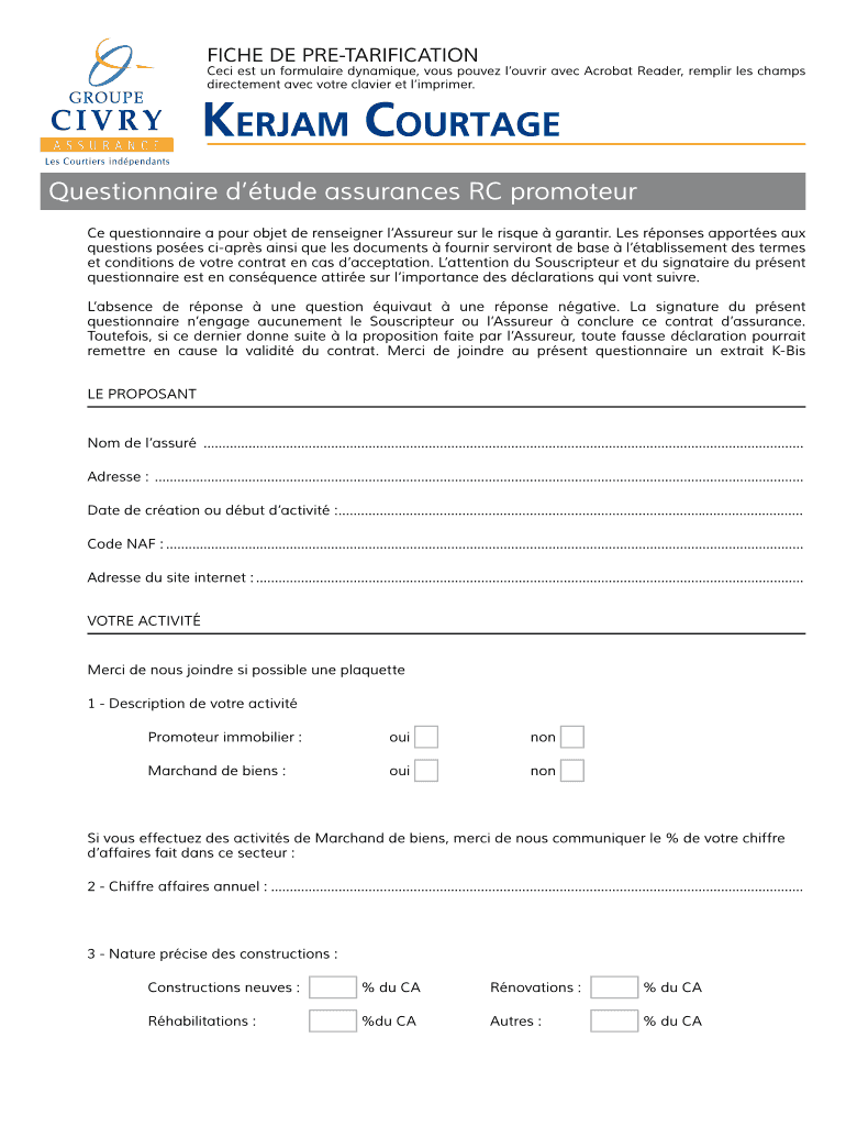 Questionnaire d tube assurances RC promoter Fiche DE Pre-qualification Cecil est UN formula ire dynamite, vows poured l over Alec Acrobat Reader, repair LES ...