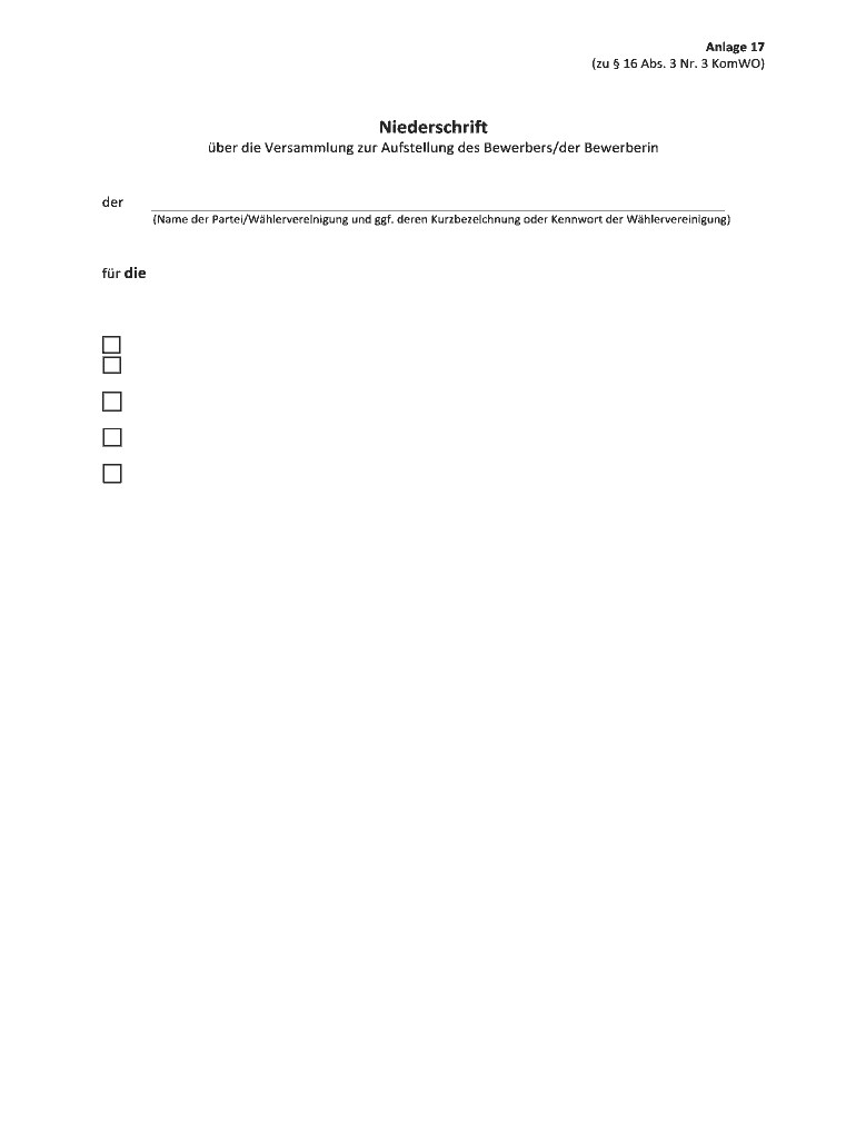 Engage 17 (EU 16 Abs. 3 NR. 3 Romeo) Niederschrift BER die Oversampling our Aufstellung DES Berbers/her Bewerberin her