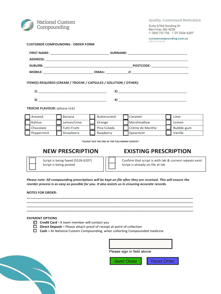 Customer compounding — order form first name: surname: address: ...