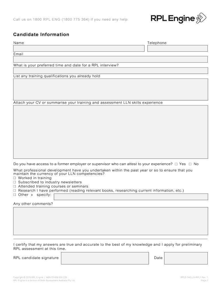 Get the free Recognition of Prior Learning (RPL) for TAELLN411 Address ...