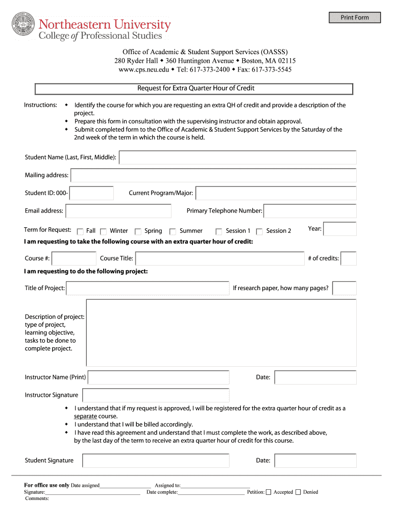 Instructions: Office of Academic & Student Support Services (OASIS) 280 Ryder Hall 360 Huntington Avenue Boston, MA 02115 www.cps.neu.edu Tel: 617-373-2400 ...