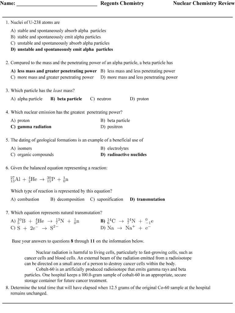 How to fill out name regents chemistry nuclear