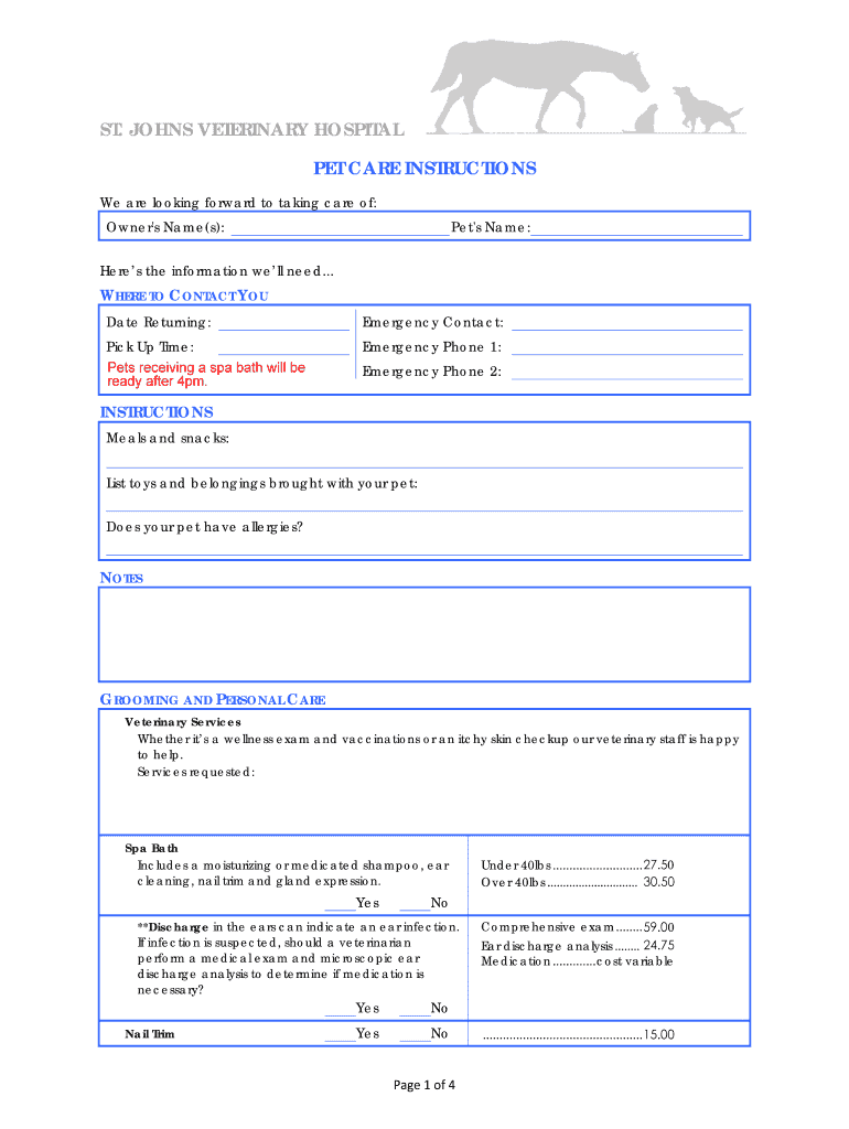 Get the free Boarding Check In Form - St Johns Veterinary Hospital