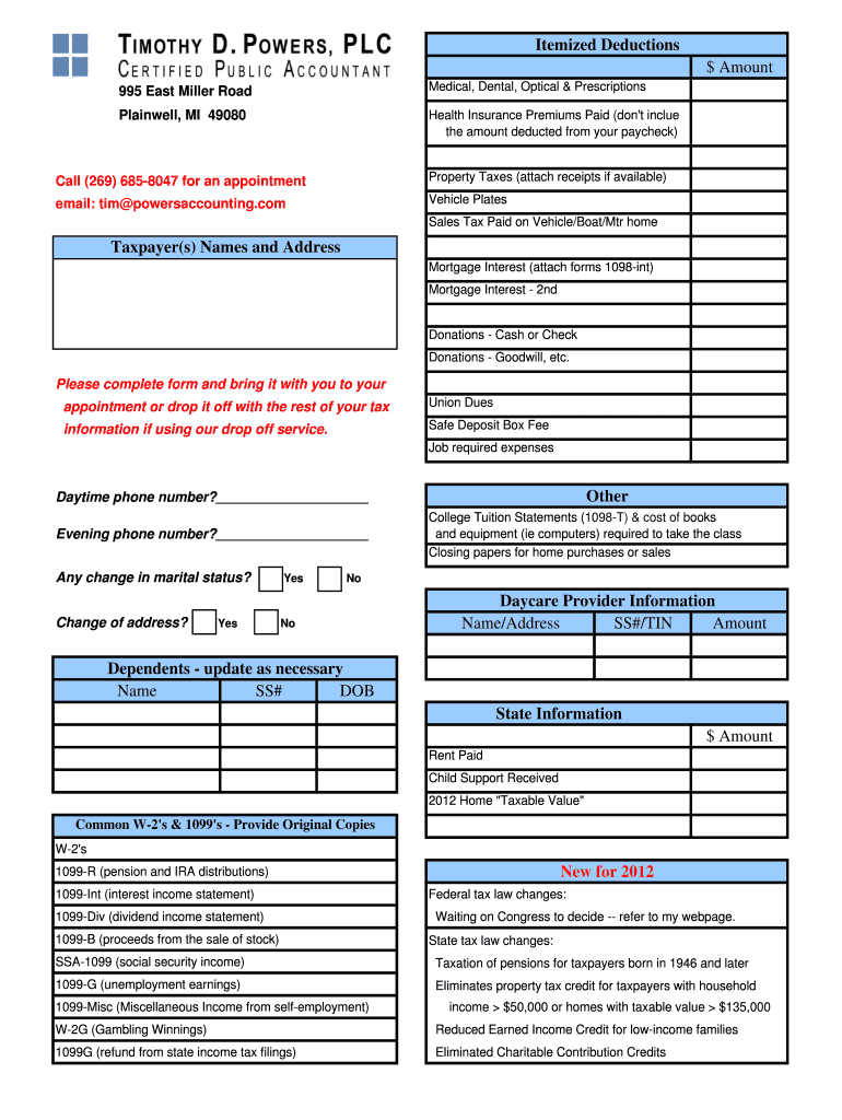 Before filling out the 2012 Itemized Deductions Form, it’s beneficial to prepare a checklist of necessary information and documents: