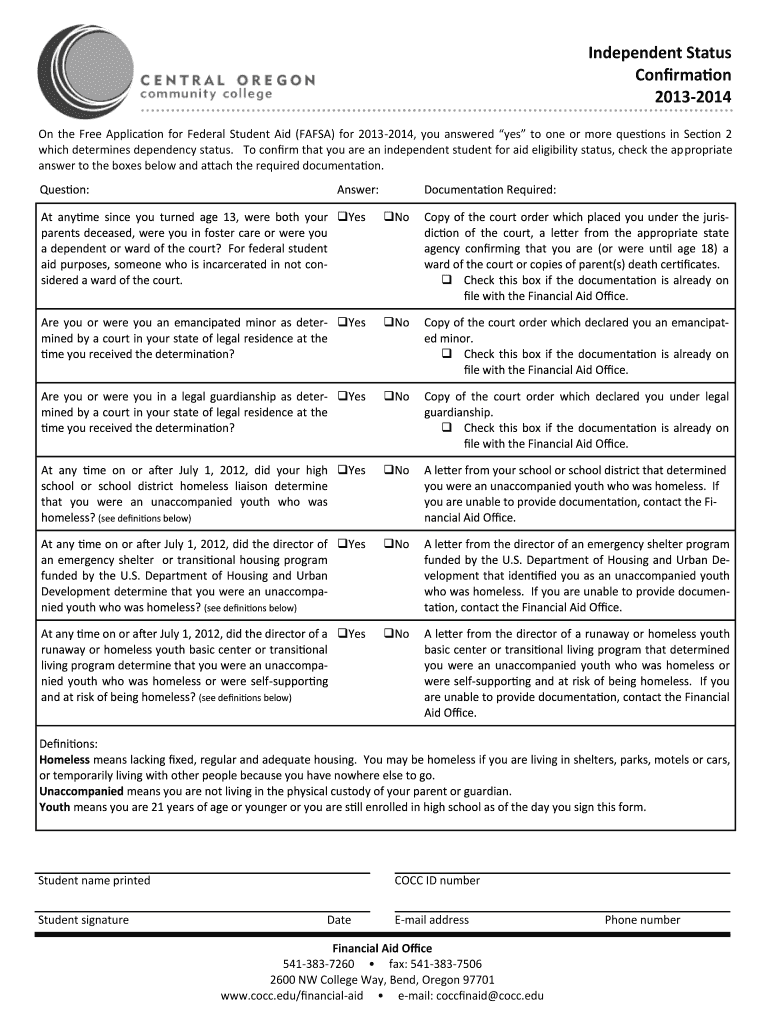 On the Free Application for Federal Student Aid (FAFSA) for 2013-2014, you answered yes to one or more questions in Section 2 which determines dependency status.