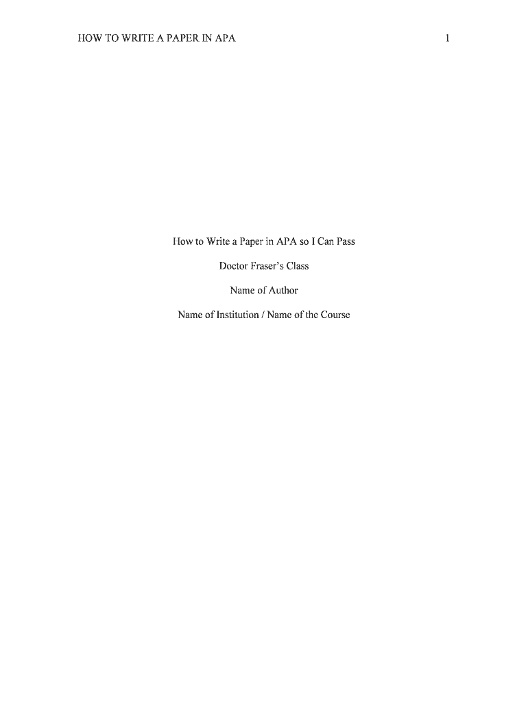HOW TO WRITE A PAPER IN APA How to Write a Paper in APA, so I Can Pass Doctor Fraser s Class Name of Author Name of Institution / Name of the Course 1 HOW TO WRITE A PAPER IN APA 2 In-Text Citation