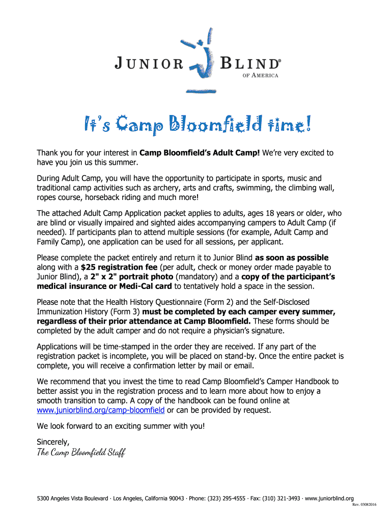 Get the free It s Camp Bloomfield time! - Junior Blind - juniorblind
