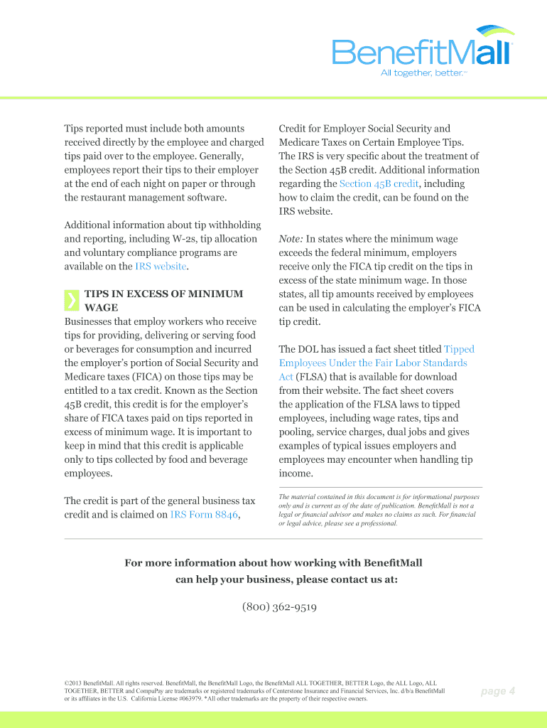 Insights innovations & Quarter 3 2013 Information for the Business Community Tipped Employees Payroll challenges for employers Payroll can be a unique challenge for businesses that employ tipped workers.