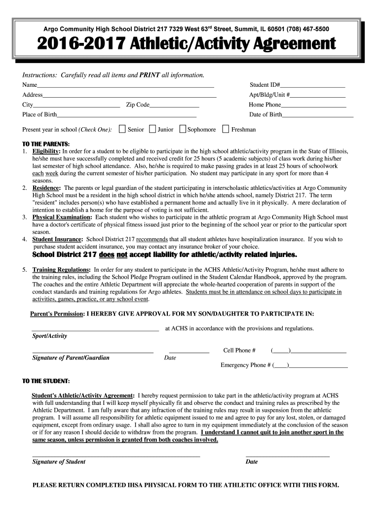 Argo Community High School forms may require information such as student demographics, contact information, and emergency contacts.