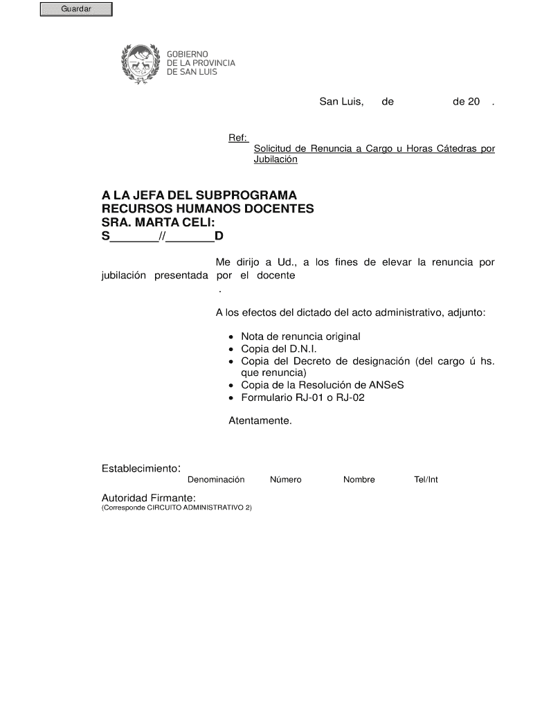 Get the free Ref: Solicitud de Renuncia a Cargo u Horas C tedras por Jubilaci n - admin hacienda ...
