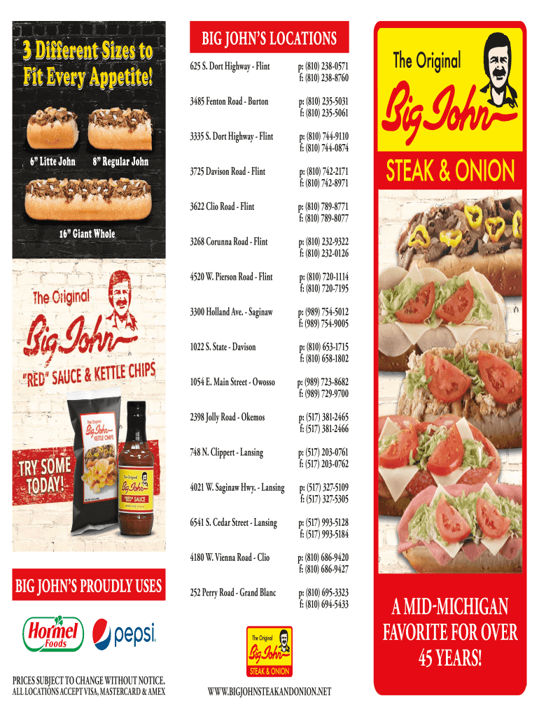 6 Little John8 Regular John16 Giant Whole JOHNS PROUDLY OVERPRICES SUBJECT TO CHANGE WITHOUT NOTICE.