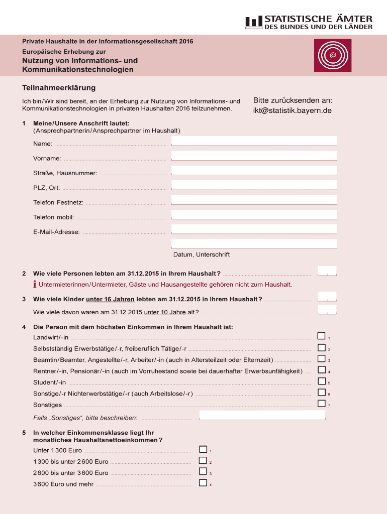 Teilnahmeerkl rung ICH bin / WIR find Bart, an Erebus our Futzing on Information- UND Kommunikationstechnologien in private Haushalten 2016 teilzunehmen.