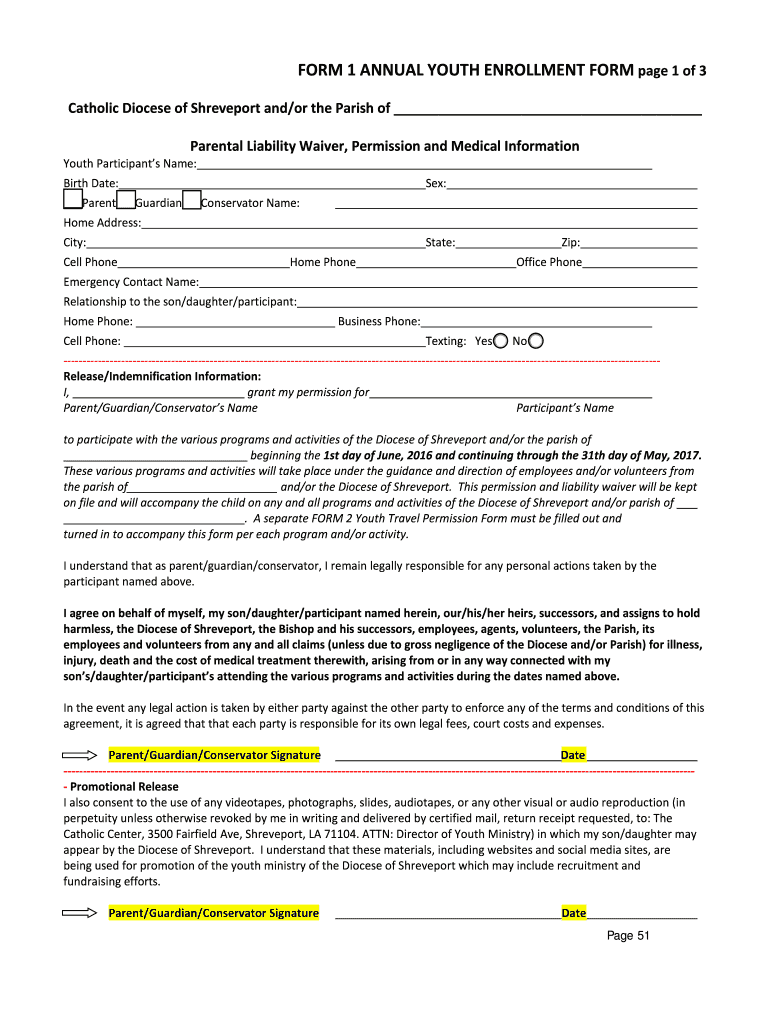 Get the free FORM 1 ANNUAL YOUTH ENROLLMENT FORM page 1 of 3 - jgschurch