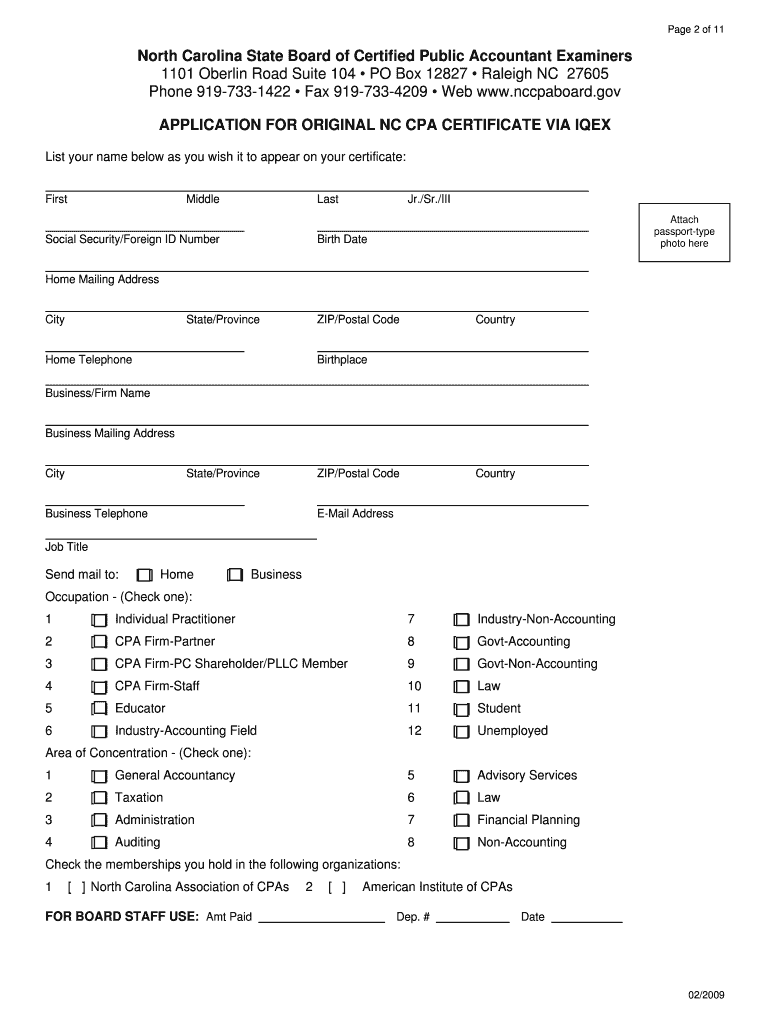 North Carolina State Board of Certified Public Accountant Examiners 1101 Oberlin Road Suite 104 PO Box 12827 Raleigh NC 27605 Phone 919-733-1422 Fax 919-733-4209 Web www.nccpaboard.gov INSTRUCTIONS