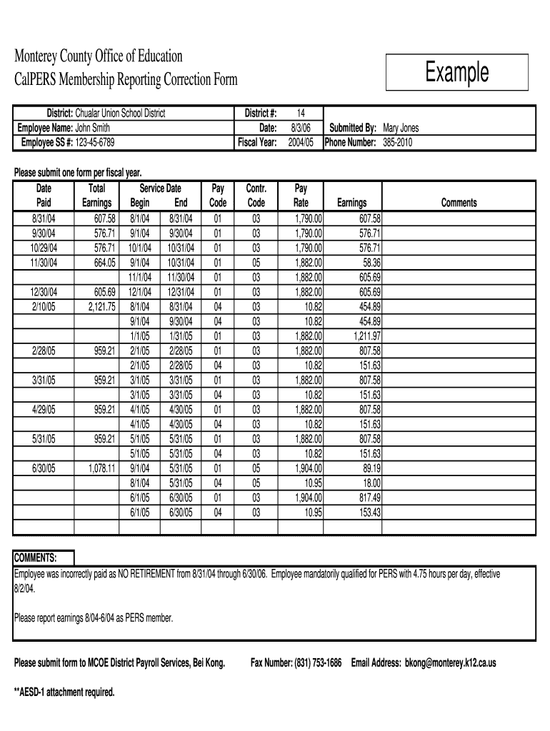 Get the free PERS Member Reporting Form Example - Monterey County Office of ... - montereycoe