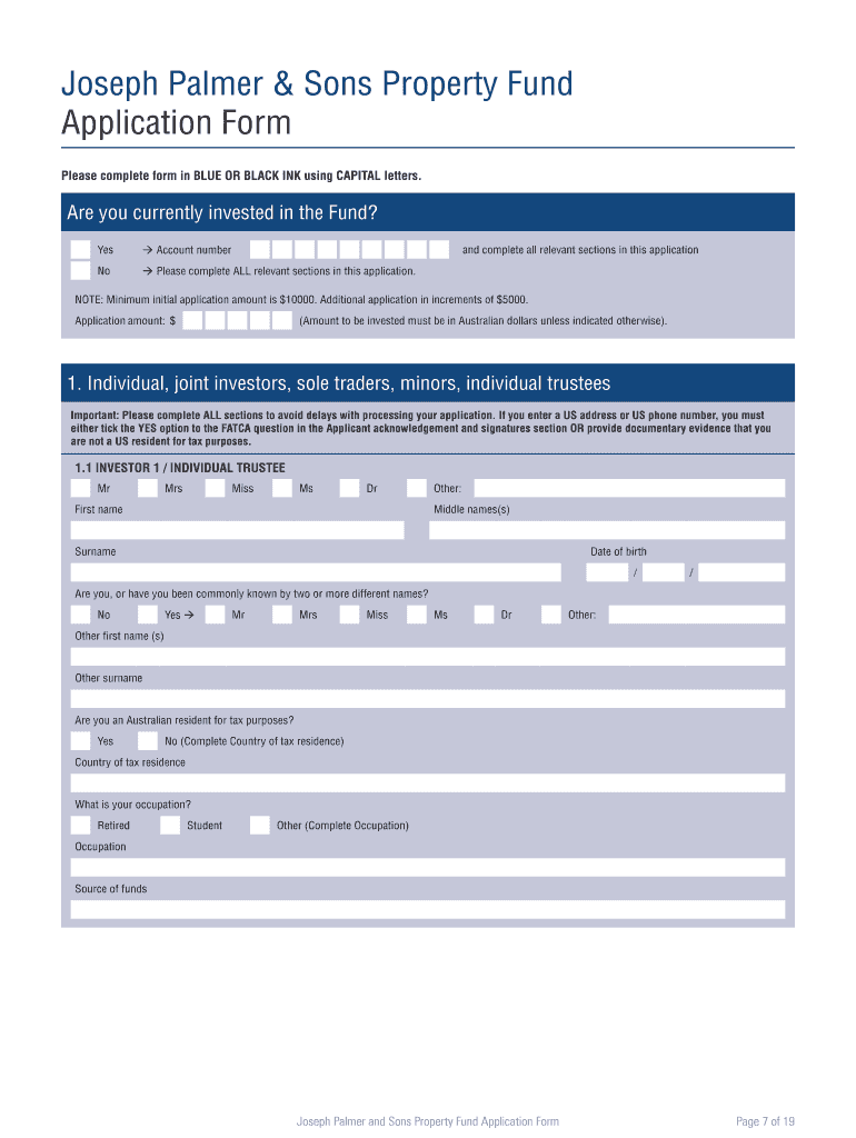 OE PAE a So Poe AAO o OE PAE a So Poe AAO o Page 1 of 19 Joseph Palmer & Sons Property Fund Application Form ARSON 133 409 382