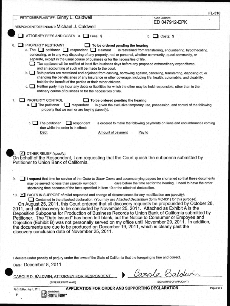 In addition to the completed application, you may need to provide supporting documents such as financial disclosures and declarations outlining your requests.