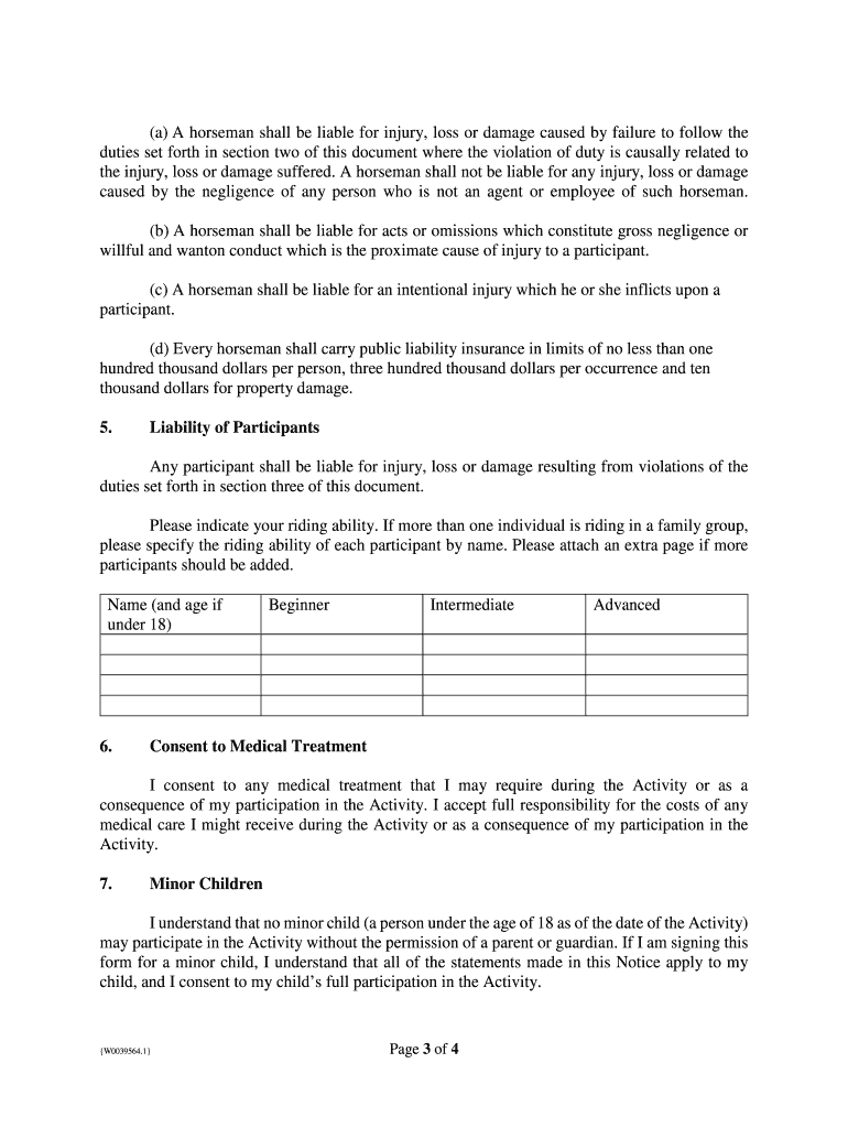 I hereby acknowledge that West Virginia law governs my participation in this activity. I hereby assume all the risk of participating in an equestrian activity ...