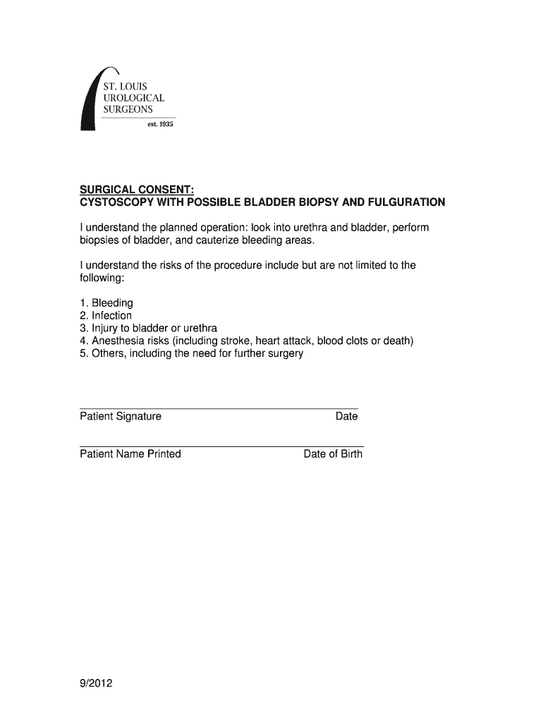 Get the free SURGICAL CONSENT: CYSTOSCOPY WITH POSSIBLE BLADDER BIOPSY ...