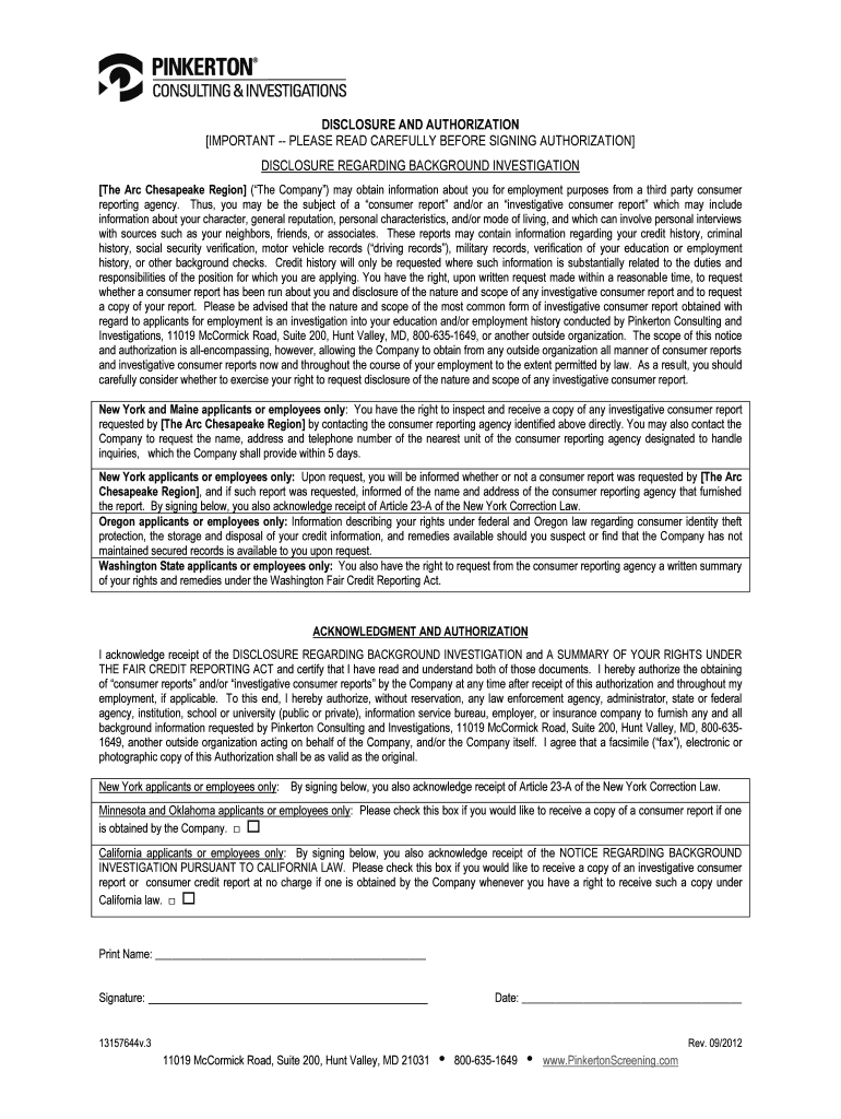 13157644v.3 Rev. 09/2012 11019 McCormick Road, Suite 200, Hunt Valley, MD 21031 800-635-1649 www.PinkertonScreening.com