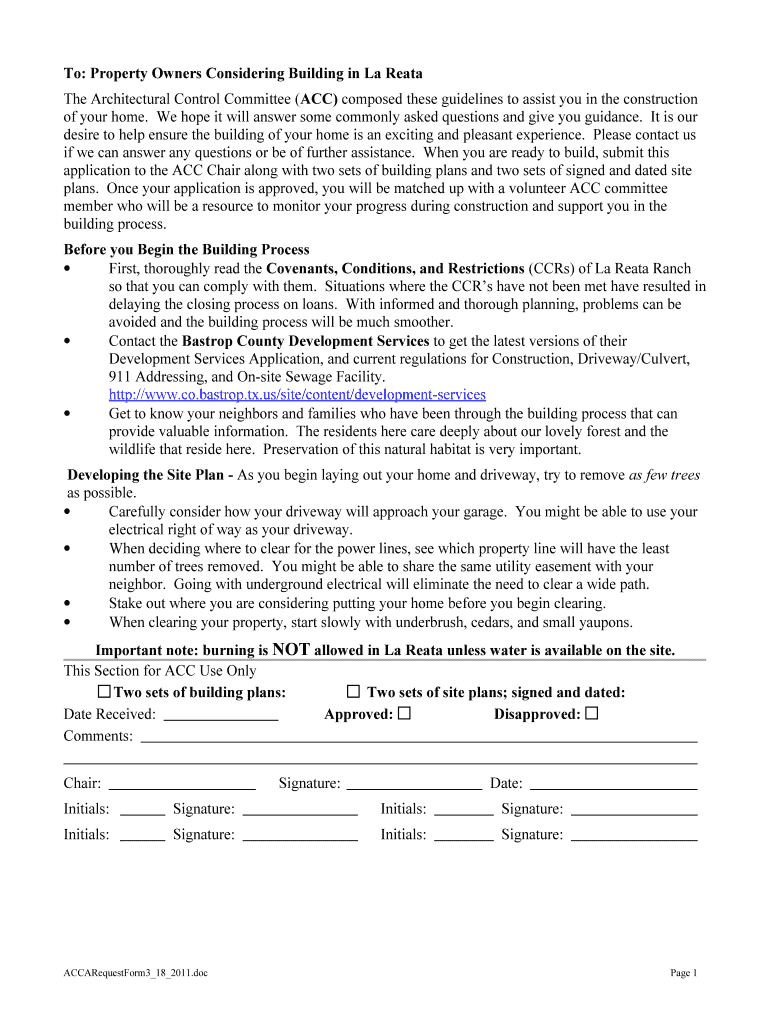 Get the free Architectural Control Committee - La Reata Ranch - lareataranch