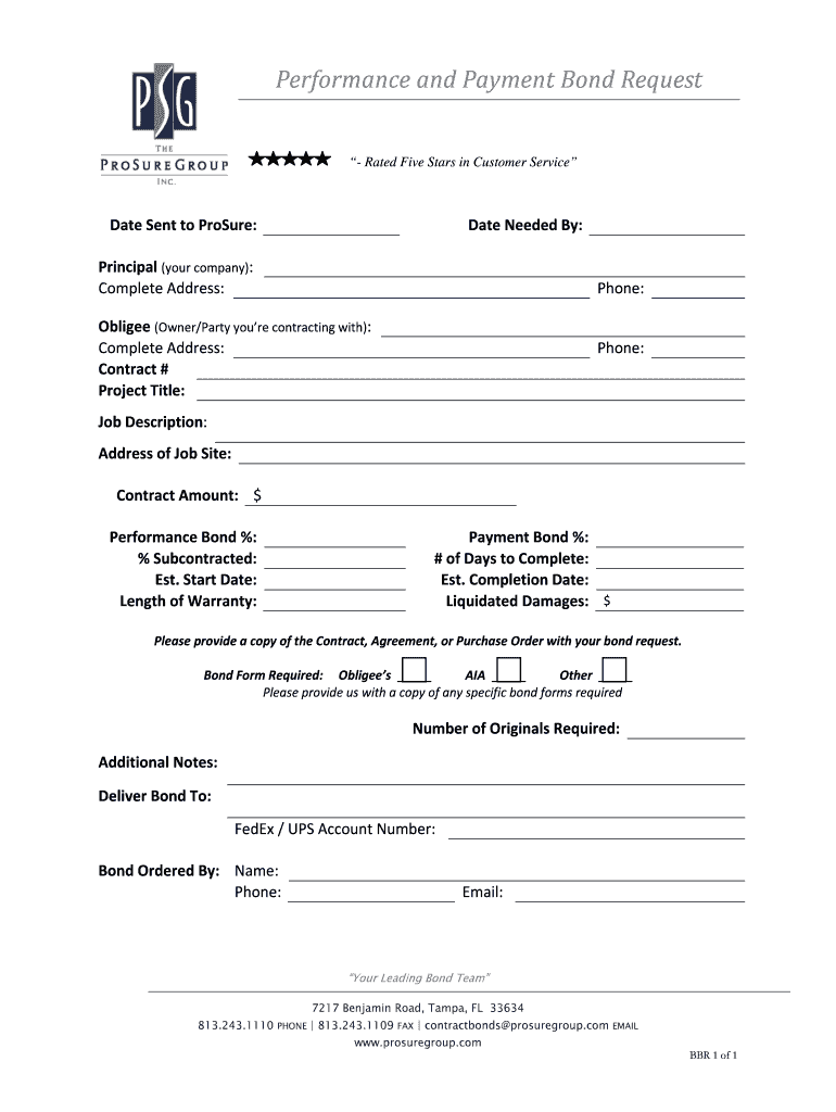 The Performance and Payment Bond Request is a business document used by companies to secure performance and payment bonds for construction projects.