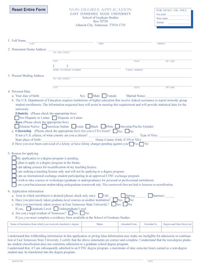 Get the free Non-Degree Student Application - etsu.edu