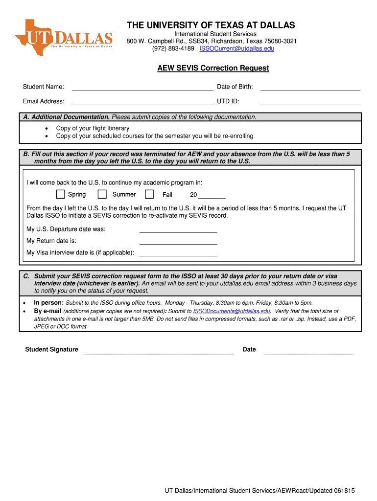 Get the free AEW SEVIS Correction Request - University of Texas at Dallas - utd