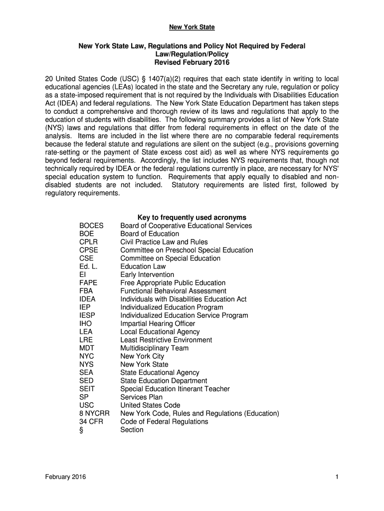 Get the free New York State Law, Regulations and Policy Not Required by Federal