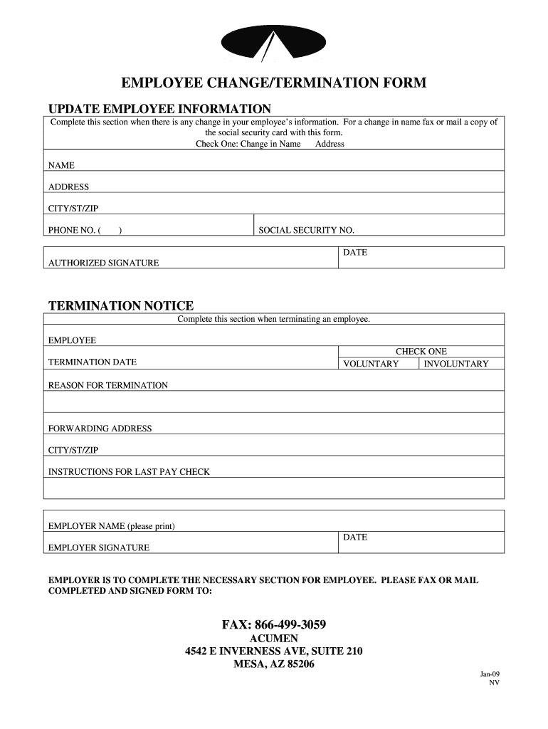 Get the free NV Employee Change-Termination Form.doc
