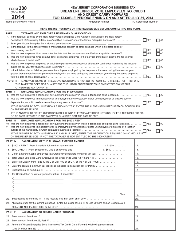 NEW JERSEY CORPORATION BUSINESS TAX ... line 9 of CBT-100 or BFC-1, ... Is the taxpayer certified by the New Jersey Urban Enterprise Zone Authority ...