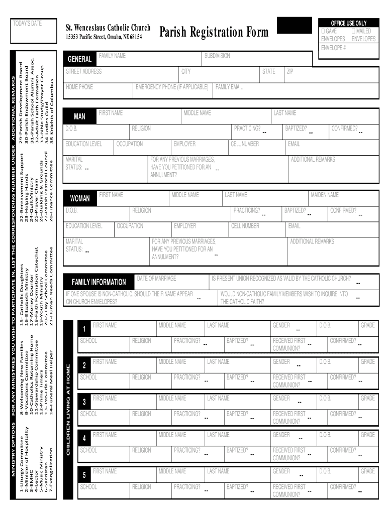Get the free St. Wenceslaus Catholic Church Parish Registration Form ... - stwenceslaus