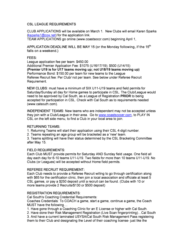 TEAM APPLICATIONS go online (www.coastsoccr.com)