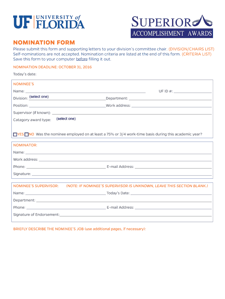 Get the free NOMINATION FORM - hr.ufl.edu - hr ufl