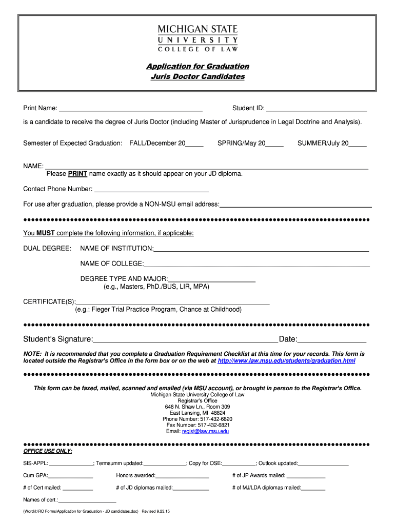 Get the free Juris Doctor Candidates - law msu