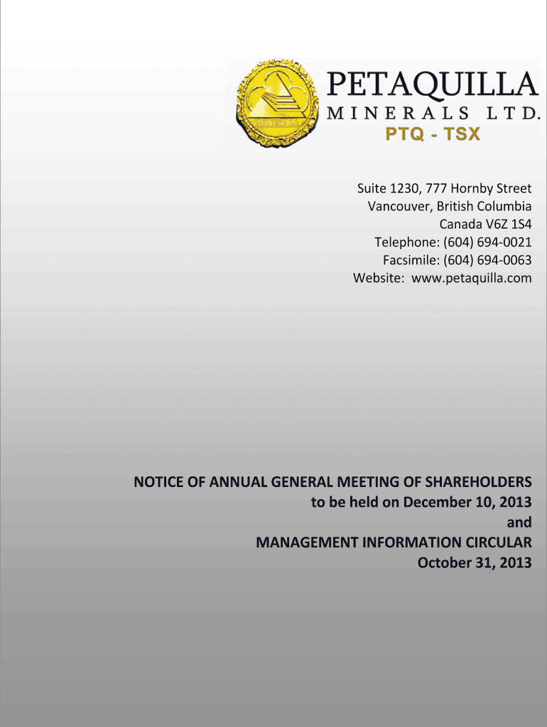 Suite 1230, 777 Horny Street Vancouver, British Columbia Canada V6Z 1S4 Telephone: (604) 694-0021 Facsimile: (604) 694-0063 Website: www.petaquilla.com NOTICE OF ANNUAL GENERAL MEETING OF SHAREHOLDERS