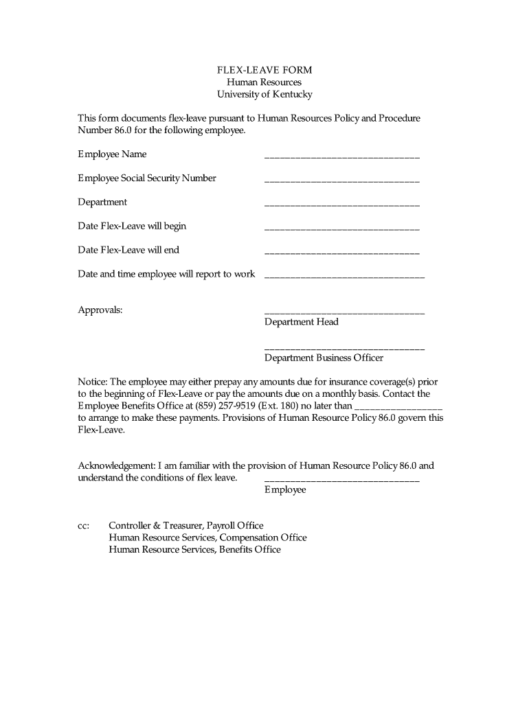 FLEX-LEAVE FORM Human Resources University of Kentucky This form documents flex-leave pursuant to Human Resources Policy and Procedure Number 86.0 for the following ...
