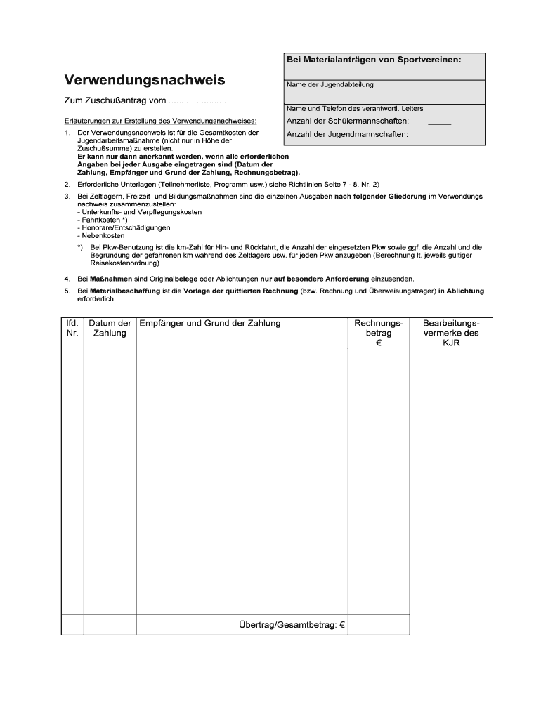 Get the free Bei Materialantr gen von Sportvereinen: Verwendungsnachweis - hassfurt