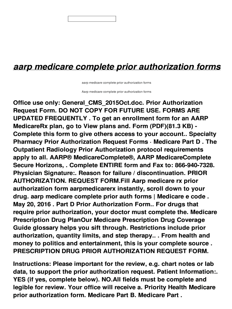 AARP medicare complete prior authorization forms AARP medicare complete prior authorization forms AARP medicare complete prior authorization forms Office use only: General CMS 2015Oct.doc. Prior Authorization