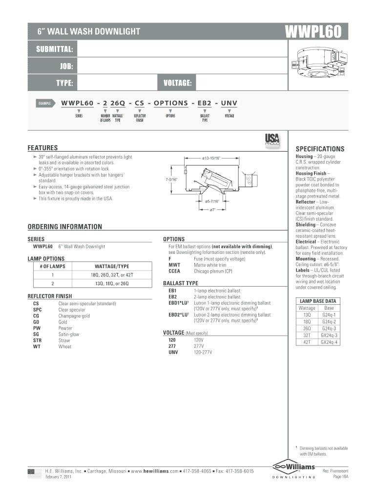Get the free SUBMITTAL: JB: TYPE: VLTAGE - H.E. Williams