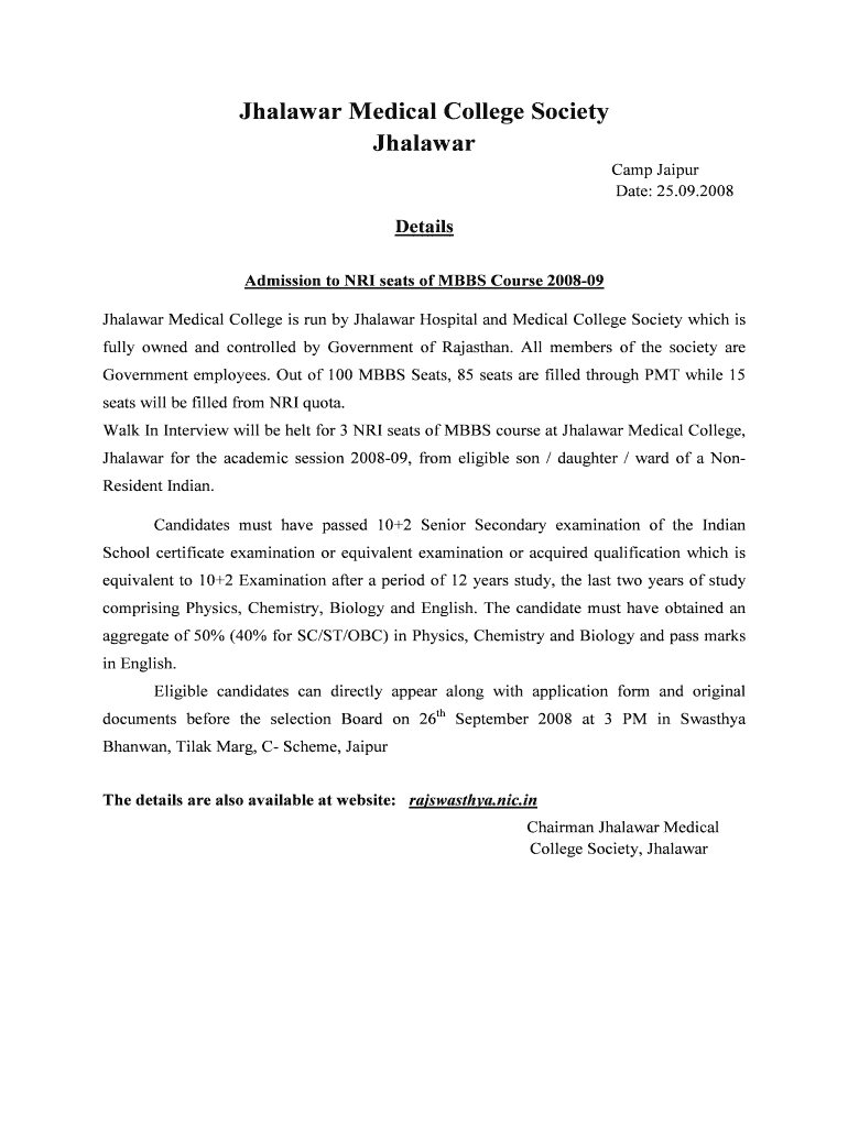 Note: Please note that the structure and content of Jhalawar Medical College Society may vary. It is recommended to refer to the official website or contact the college directly for accurate and up-to-date information on the application process and eligibility criteria.