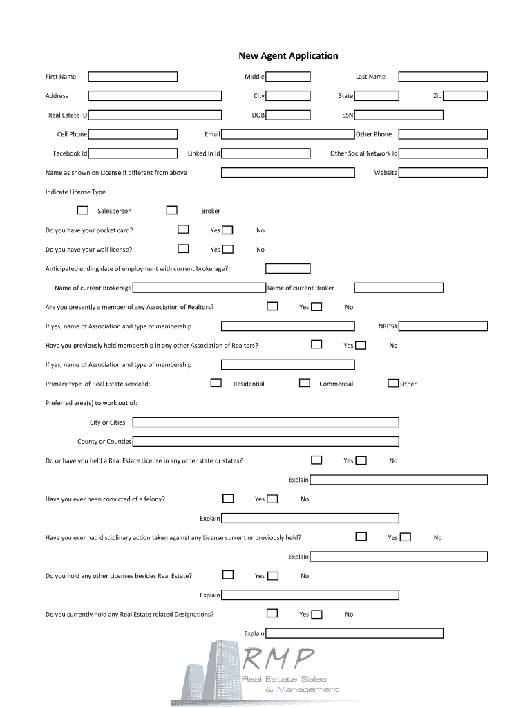 Get the free New Agent Application - RMP Real Estate Sales & Management