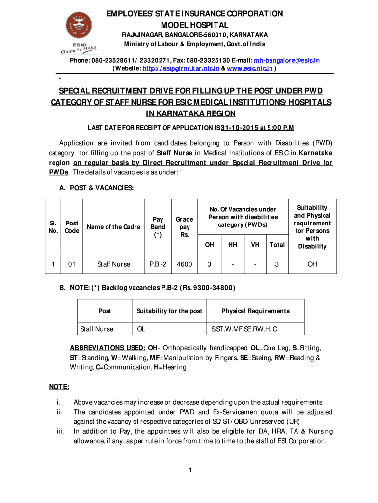 Get the free Recruitment Drive for filling up the post under PWD ... - Esic.nic.in - studentstattle