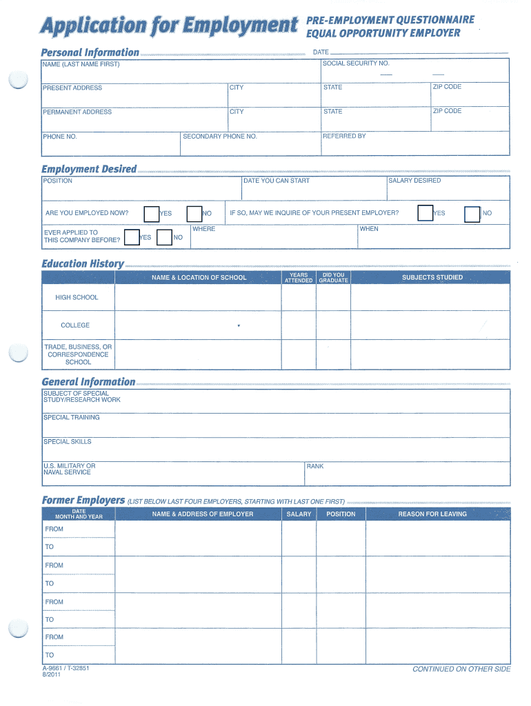 Application for Employment Personal information DATE. NAME (LAST NAME FIRST) SOCIAL SECURITY NO. PRESENT ADDRESS CITY STATE ZIP CODE PERMANENTADDRESS CITY STATE ZIP CODE.